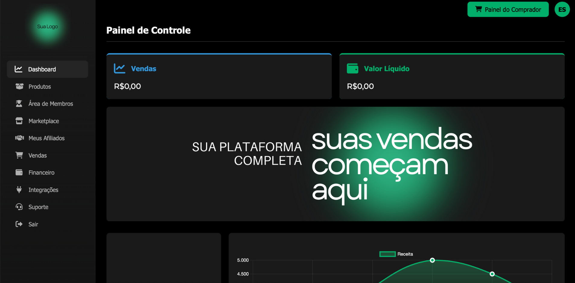 Oferecemos uma solução completa para você criar seu próprio mercado digital. Com código fonte 100% seu, personalização total e todas as funcionalidades que você precisa para gerenciar vendas, usuários e afiliados.